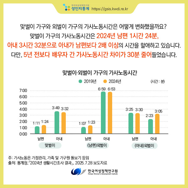 [성인지통계] 부부의 가사노동시간, 어떻게 변했을까?