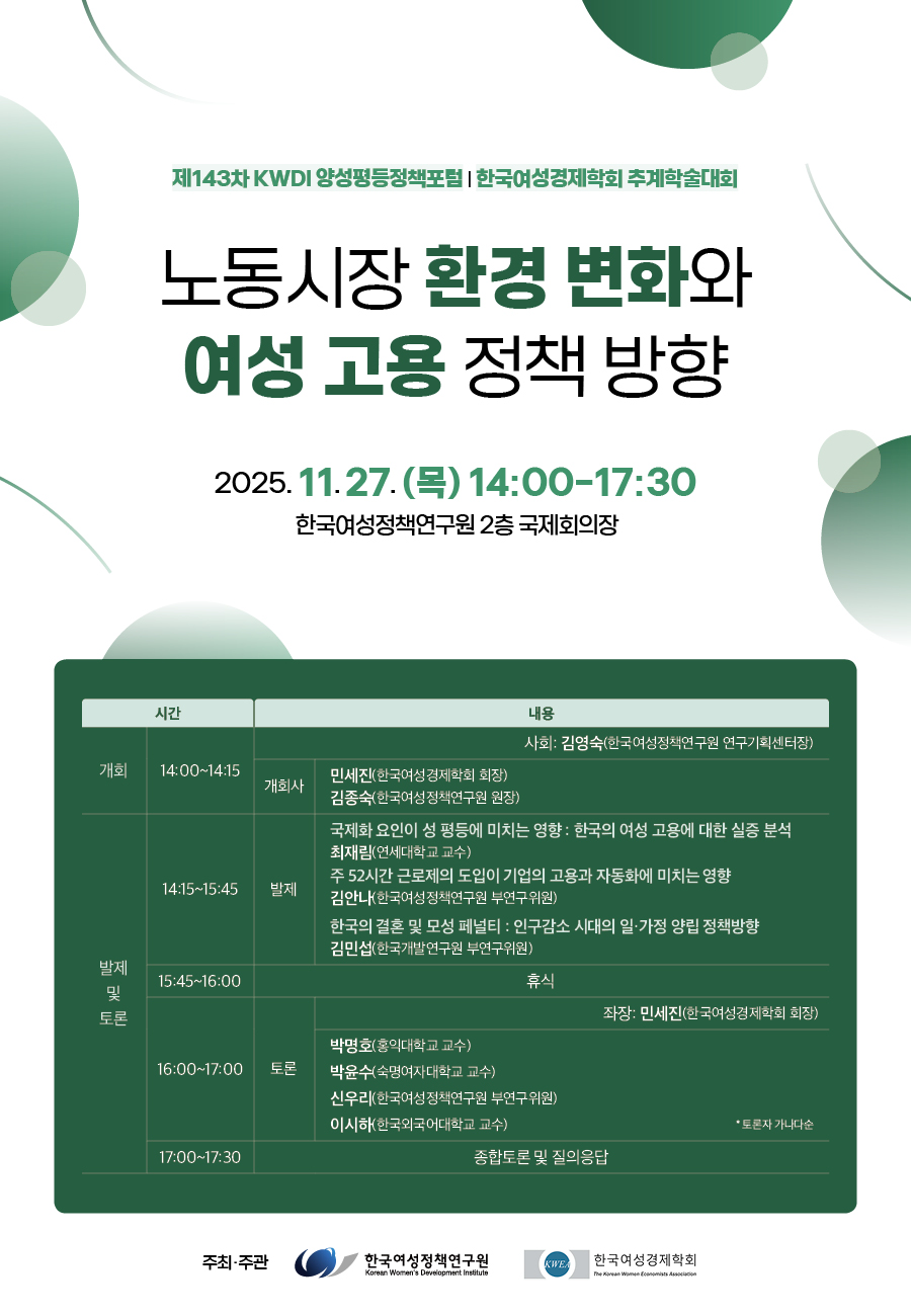 [제143차 양성평등정책포럼] 노동시장 환경 변화와 여성 고용 정책 방향