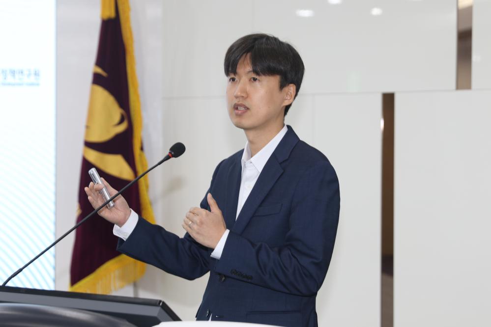 "한국의 결혼 및 모성 패널티 : 인구감소 시대의 일·가정 양립 정책방향"을 주제로 발표하고 있는 김민섭 KDI 한국개발연구원 부연구위원