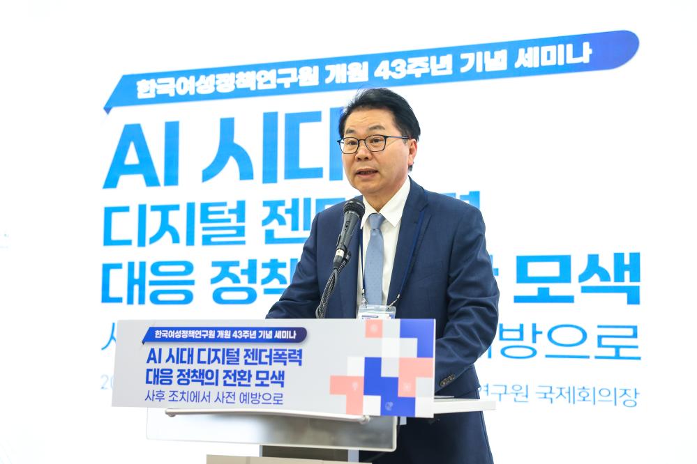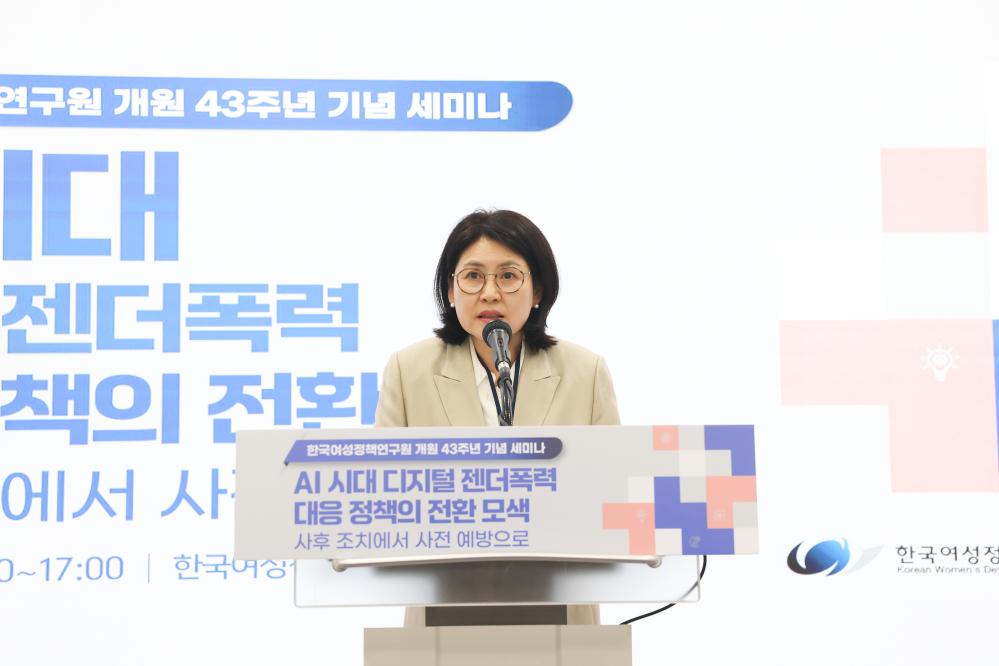 ㅁ 한국여성정책연구원은 16일 오후 서울 은평구 한국여성정책연구원 국제회의장에서 “AI 시대 디지털 젠더폭력 대응 정책의 전환 모색 : 사후 조치에서 사전 예방으로”를 주제로 개원 43주년 기념 세미나를 개최했다. 이번 세미나는 인공지능 기술 확산에 따라 증가하고 있는 디지털 젠더폭력의 새로운 양상을 진단하고, 기존의 사후 대응 중심 정책의 한계를 점검하며, 기술 설계 단계부터 성평등 관점을 반영하는 선제적 대응 방안을 모색하고자 마련되었다.