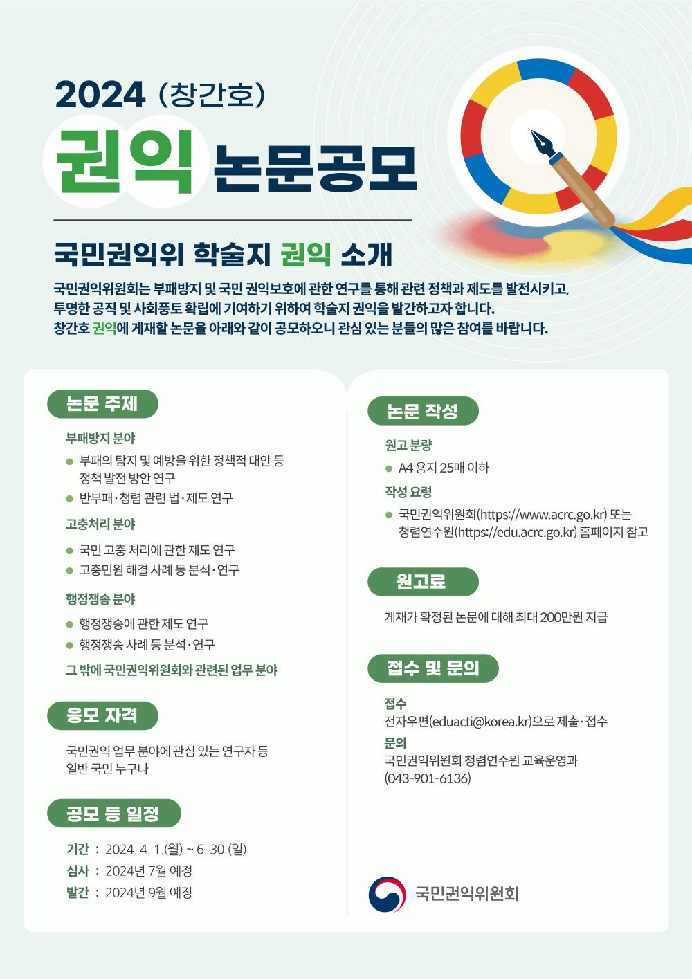 [청렴연수원] 국민권익위 학술지 '권익' 창간호 논문투고 안내