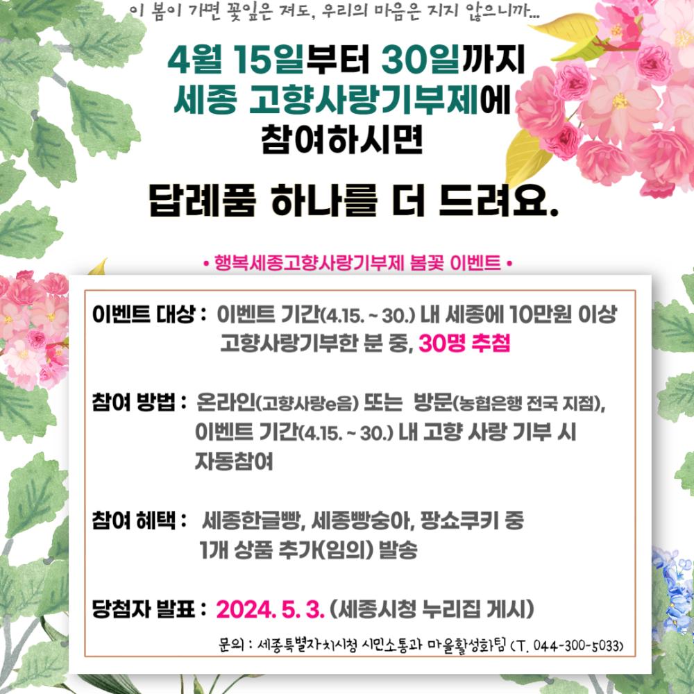 [세종특별자치시] 세종 고향사랑기부제 봄꽃 이벤트 개최