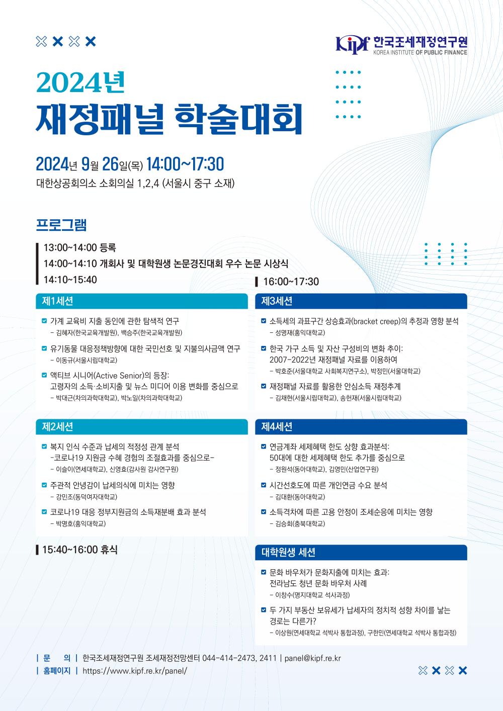 [한국조세재정연구원] 2024년 재정패널 학술대회 안내