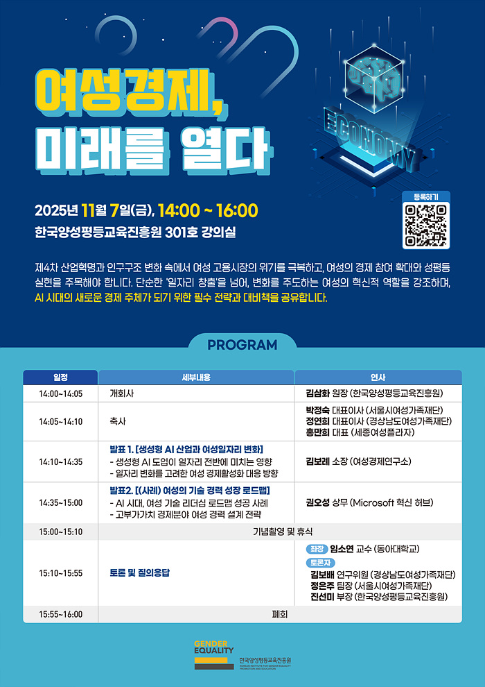 [한국양성평등교육진흥원] "여성경제, 미래를 열다" 세미나