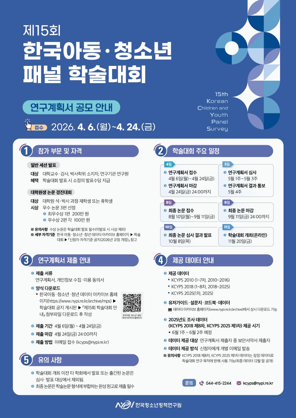 [한국청소년정책연구원] 제15회 한국아동·청소년패널 학술대회 연구계획서 공모