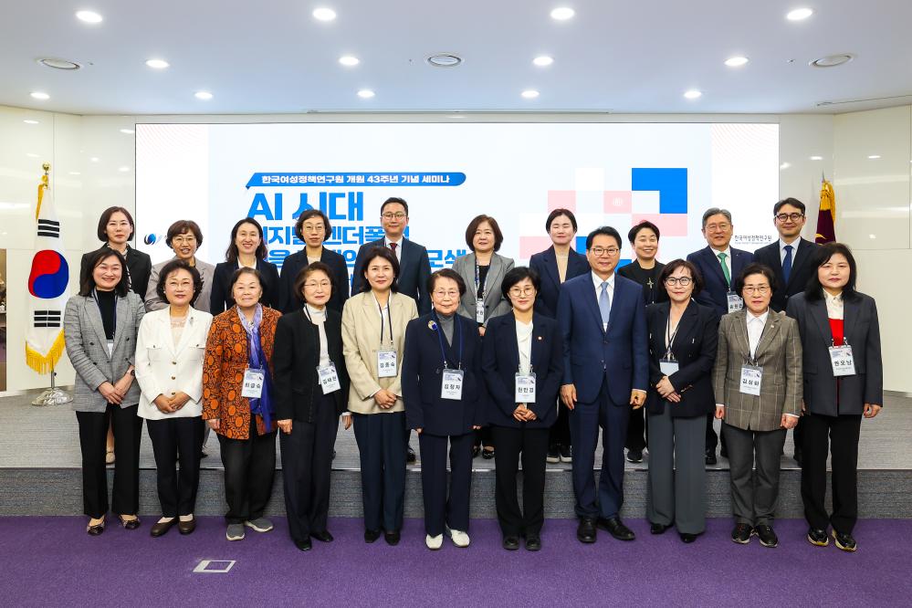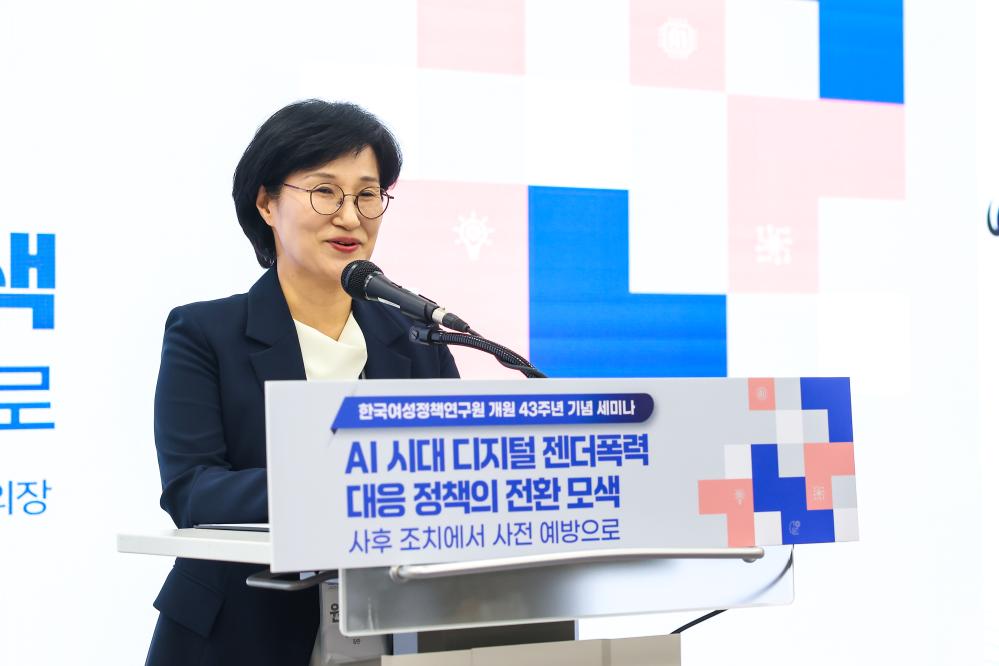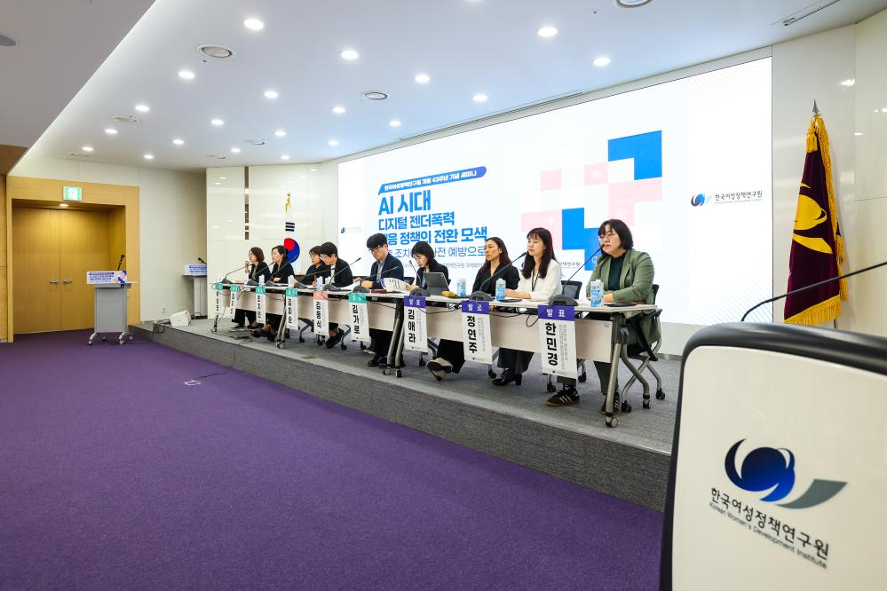ㅁ 한국여성정책연구원은 16일 오후 서울 은평구 한국여성정책연구원 국제회의장에서 “AI 시대 디지털 젠더폭력 대응 정책의 전환 모색 : 사후 조치에서 사전 예방으로”를 주제로 개원 43주년 기념 세미나를 개최했다. 이번 세미나는 인공지능 기술 확산에 따라 증가하고 있는 디지털 젠더폭력의 새로운 양상을 진단하고, 기존의 사후 대응 중심 정책의 한계를 점검하며, 기술 설계 단계부터 성평등 관점을 반영하는 선제적 대응 방안을 모색하고자 마련되었다.